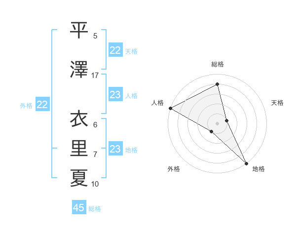 平澤 衣里夏さんの総格は45画の4点!