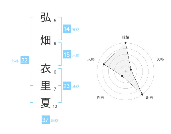 弘畑 衣里夏さんを姓名の画数から五運を鑑定