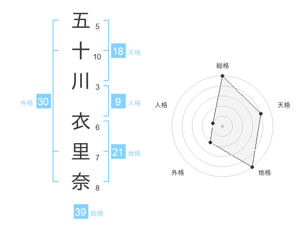 五十川 衣里奈さんの総格は39画の5点!