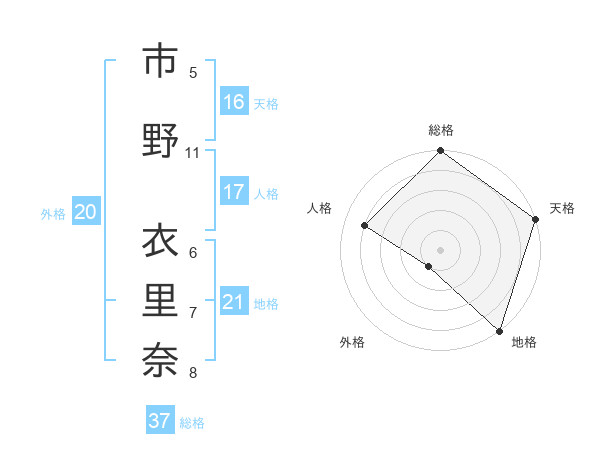 市野 衣里奈さんを姓名の画数から五運を鑑定