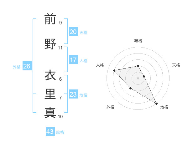 前野 衣里真さんを姓名の画数から五運を鑑定
