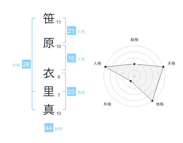 笹原 衣里真さんを姓名の画数から五運を鑑定