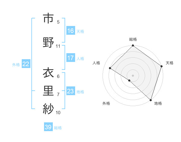 市野 衣里紗さんを姓名の画数から五運を鑑定