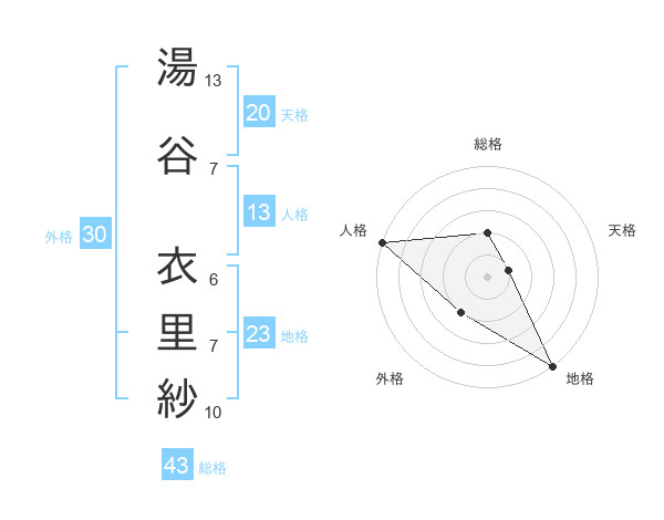 湯谷 衣里紗さんの総格は43画の2点!