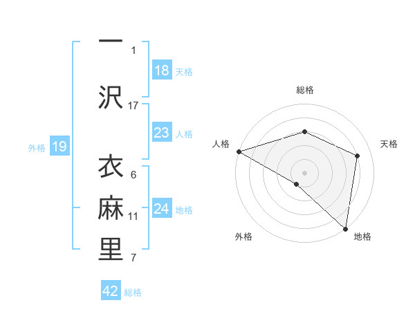 一沢 衣麻里さんを姓名の画数から五運を鑑定