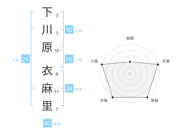 下川原 衣麻里さんの外格は24画の5点!