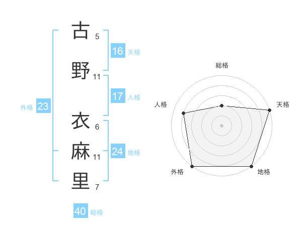 古野 衣麻里さんの外格は23画の5点!
