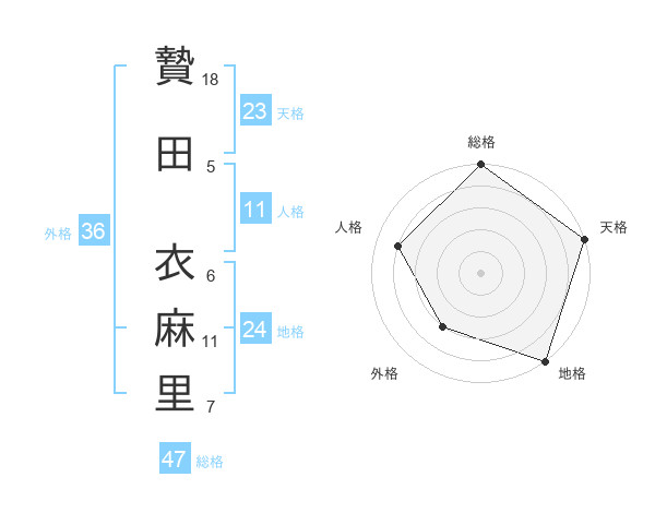 贄田 衣麻里さんを姓名の画数から五運を鑑定