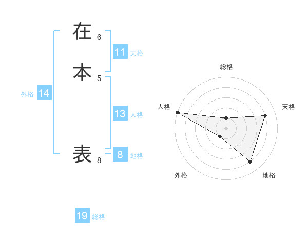 在本 表さんの地格は8画の4点!