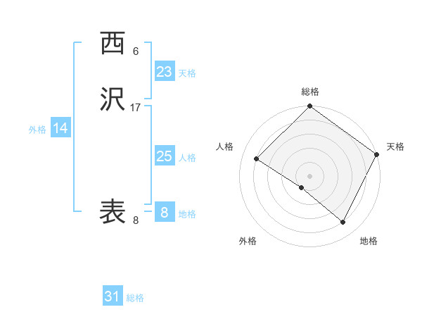 西沢 表さんの総格は31画の5点!