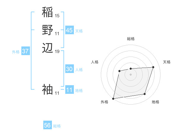 稲野辺 袖さんの外格は37画の5点!