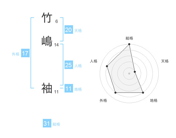 竹嶋 袖さんの総格は31画の5点!