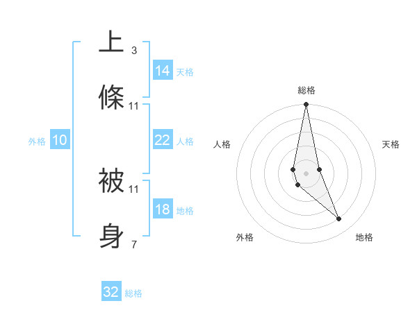 上條 被身さんの地格は18画の4点!