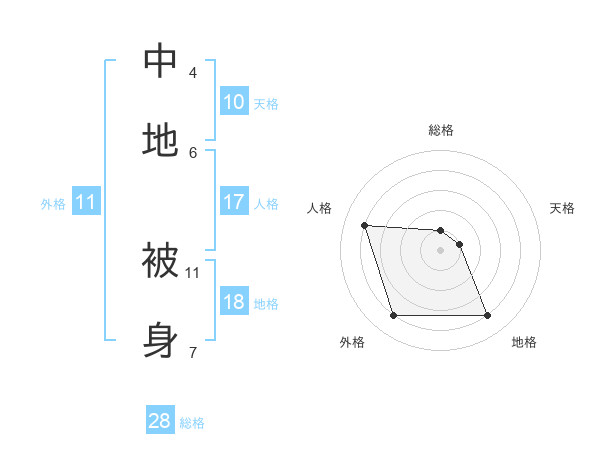 中地 被身さんの地格は18画の4点!