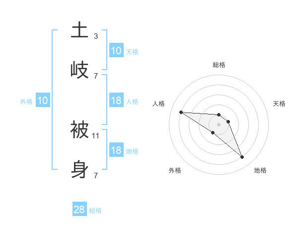 土岐 被身さんの総格は28画の1点!