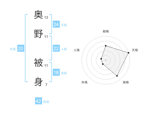 奥野 被身さんの天格は24画の5点!