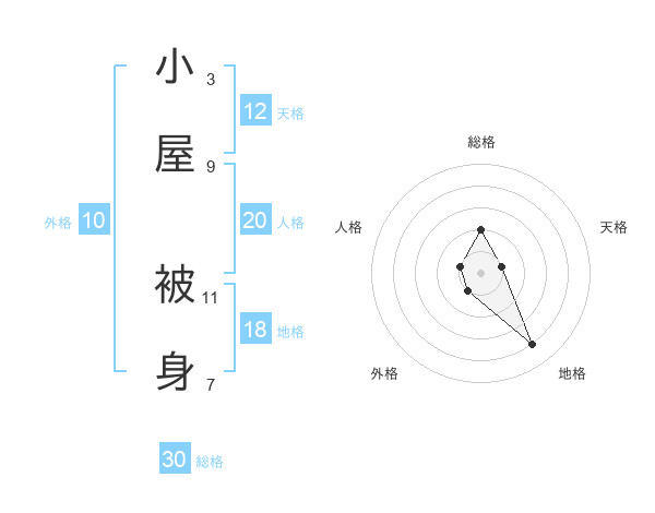 小屋 被身さんの総格は30画の2点!