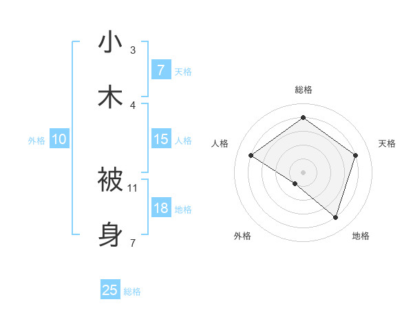 小木 被身さんの総格は25画の4点!