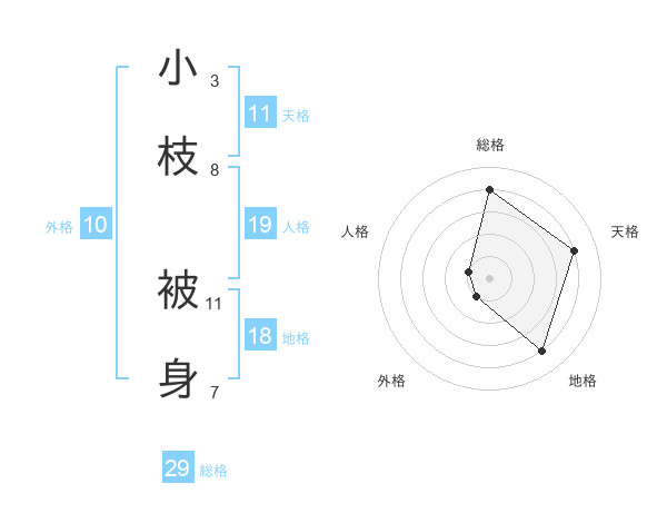 小枝 被身さんの総格は29画の4点!