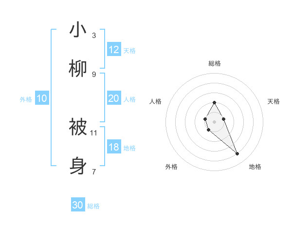 小柳 被身さんの総格は30画の2点!