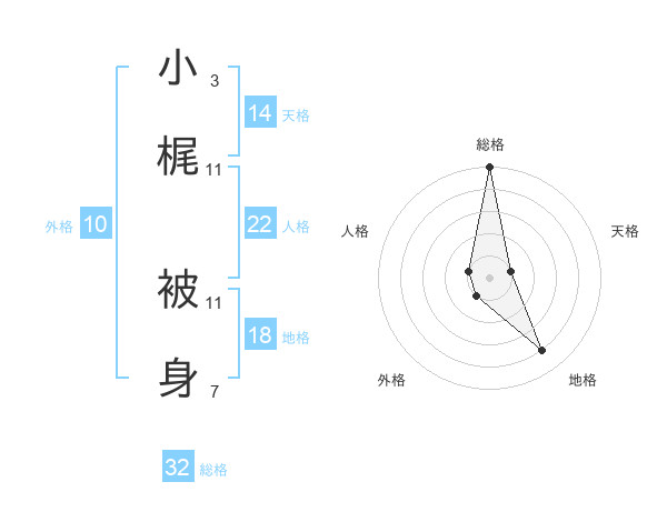 小梶 被身さんの総格は32画の5点!