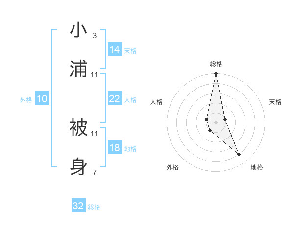 小浦 被身さんの総格は32画の5点!