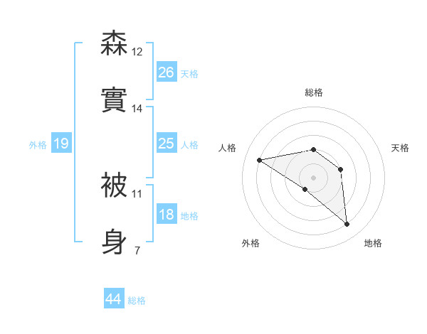 森實 被身さんの総格は44画の2点!