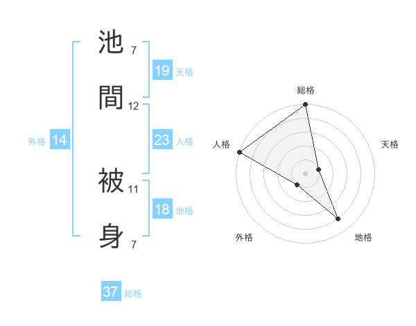 池間 被身さんの総格は37画の5点!