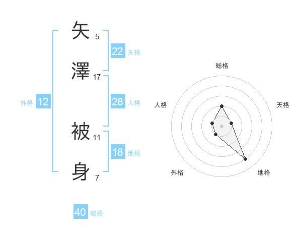 矢澤 被身さんの総格は40画の2点!