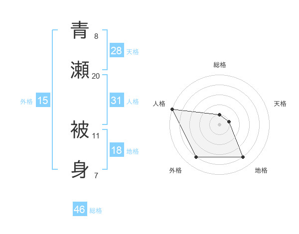 青瀬 被身さんの総格は46画の1点!