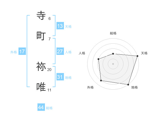 寺町 袮唯さんを姓名の画数から五運を鑑定