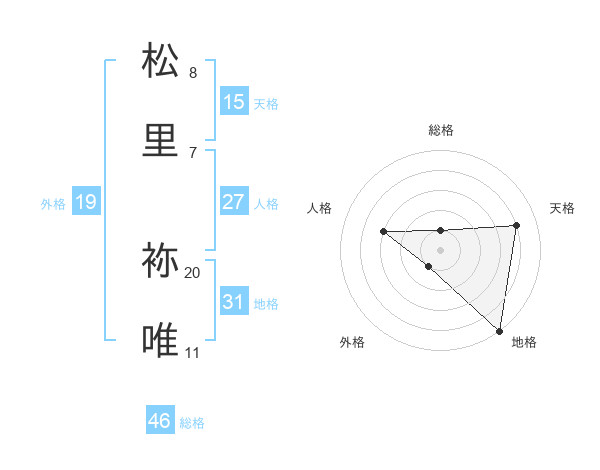 松里 袮唯さんを姓名の画数から五運を鑑定