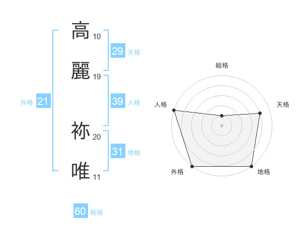 高麗 袮唯さんを姓名の画数から五運を鑑定