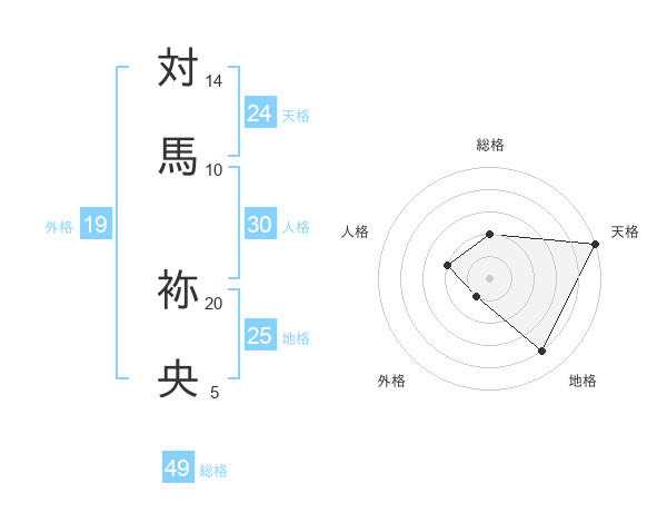対馬 袮央さんの総格は49画の2点!