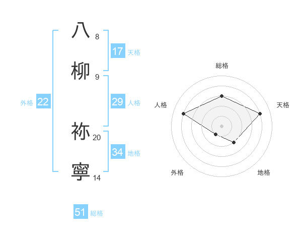 八柳 袮寧さんを姓名の画数から五運を鑑定