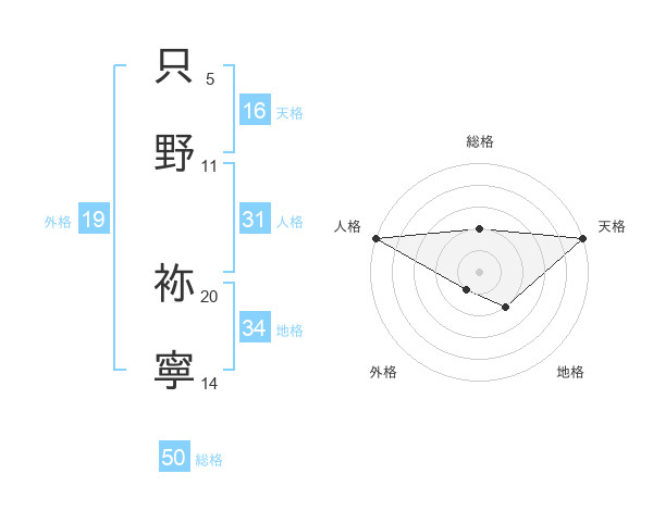 只野 袮寧さんの人格は31画の5点!