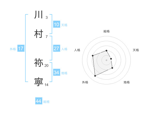 川村 袮寧さんを姓名の画数から五運を鑑定