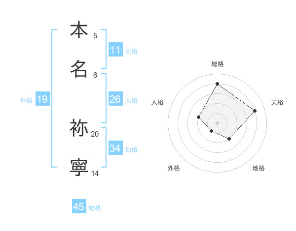 本名 袮寧さんを姓名の画数から五運を鑑定