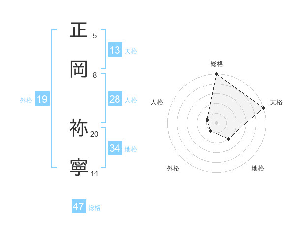 正岡 袮寧さんを姓名の画数から五運を鑑定