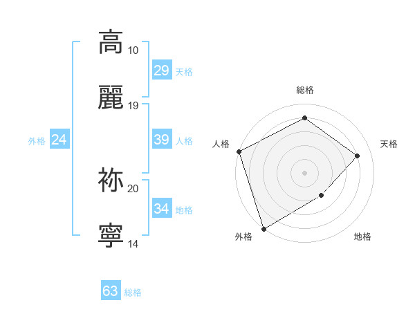 高麗 袮寧さんの総格は63画の4点!