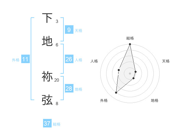 下地 袮弦さんを姓名の画数から五運を鑑定
