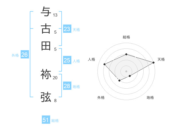 与古田 袮弦さんを姓名の画数から五運を鑑定