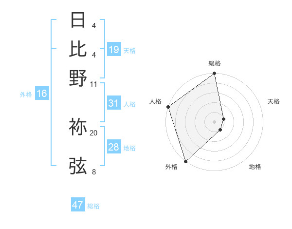 日比野 袮弦さんの総格は47画の5点!