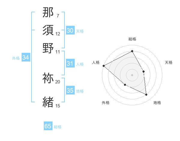 那須野 袮緒さんの総格は65画の4点!
