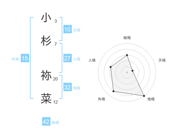小杉 袮菜さんを姓名の画数から五運を鑑定