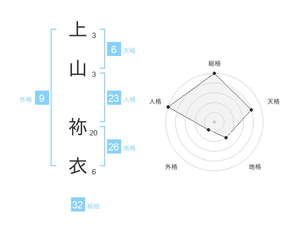 上山 袮衣さんの天格は6画の4点!