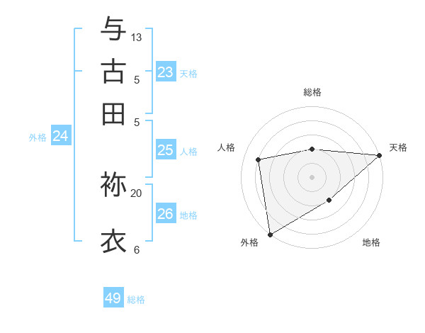 与古田 袮衣さんを姓名の画数から五運を鑑定