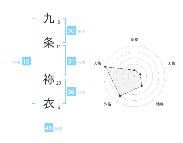 九条 袮衣さんを姓名の画数から五運を鑑定