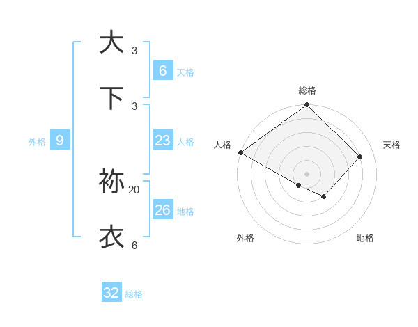 大下 袮衣さんを姓名の画数から五運を鑑定
