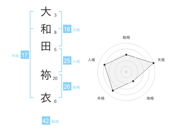 大和田 袮衣さんを姓名の画数から五運を鑑定